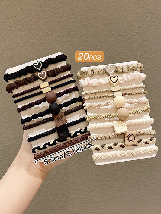20 piezas de gomas elásticas negras y café oscuro simples y versátiles para el cabello, para mujeres casuales