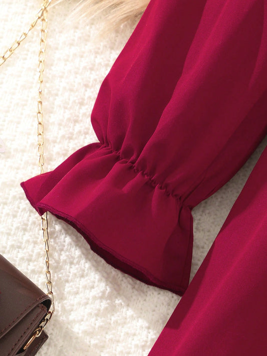 Chica adolescente Vestido con cinturón de cuello con fruncido de manga amplia bajo fruncido