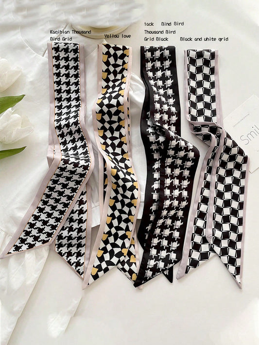 4 Piezas/set Pañuelo Y Cinta Para El Cabello Con Estampado Vintage Francés De Flores Y Rayas Para Mujeres, Para Ocasiones Casuales, Elegantes, Diarias Y Citas, Un Regalo Multipropósito Para Vestirse