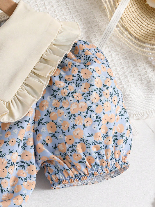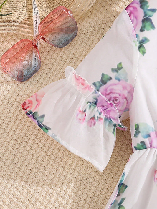 Vestido elegante para niñas preadolescentes con estampado floral y volantes en el dobladillo