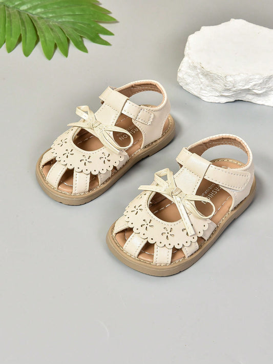 1 par de zapatos de PU para niñas con decoraciones de lazo, diseño de gancho y bucle, suelas antideslizantes blandas y de moda adecuadas para la primavera y el otoño