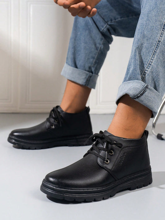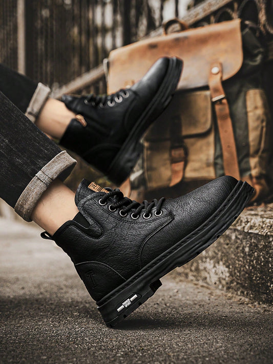 Zapatillas deportivas altas casuales para hombre, diseño de unicolor con estilo, botas cómodas con cordones aptas para actividades al aire libre y atuendos casuales