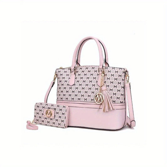 Bolso de Hombro Tipo Satchel de Lujo de Cuero Sintético con Asa Superior para Damas - Cierre de Cremallera, Bordes Pintados, Incluye Monedero - Bolso de Mano Elegante y Espacioso con Detalle de Pompon