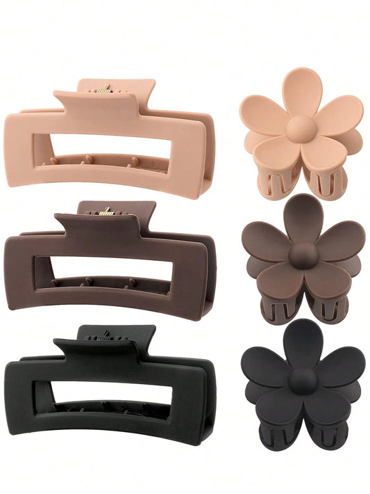 Conjunto de 4 pasadores grandes para cabello de plástico ligero antideslizantes para mujer en negro, blanco, caqui y marrón, para peinados simples pero elegantes, adecuados para uso diario, fiestas casuales, traslados al trabajo, lavarse la cara, bañarse
