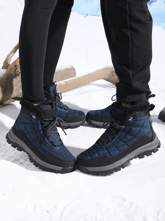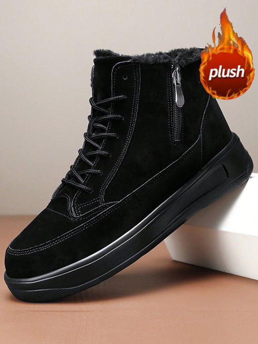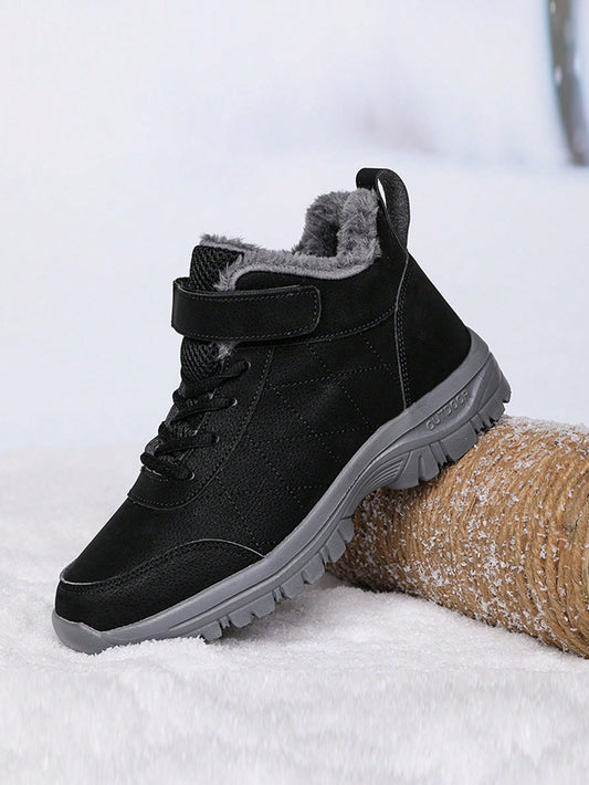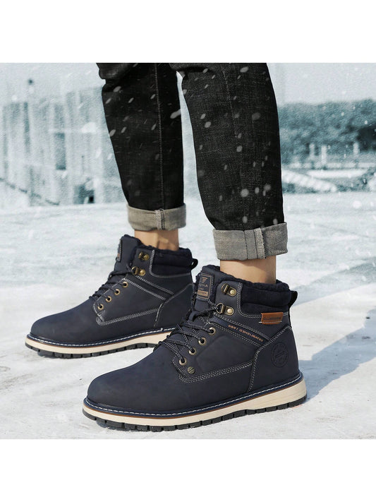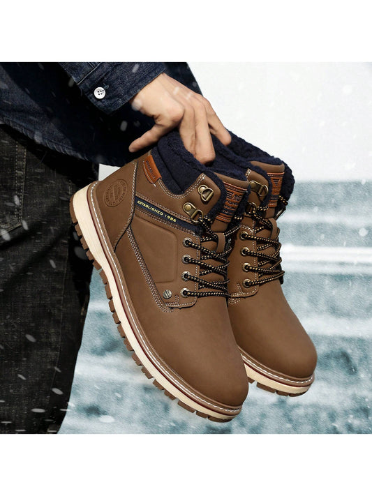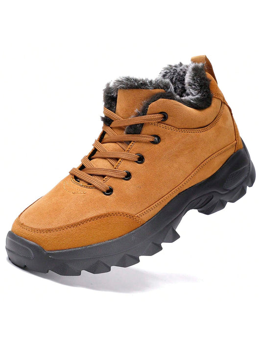 Botas de nieve de invierno para hombres - Forro de felpa cálido, antideslizante, zapatos de senderismo hasta el tobillo, adecuados para actividades al aire libre, estilo casual, suela suave y duradera