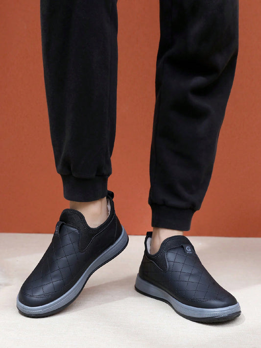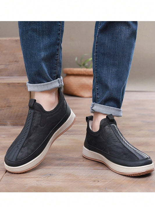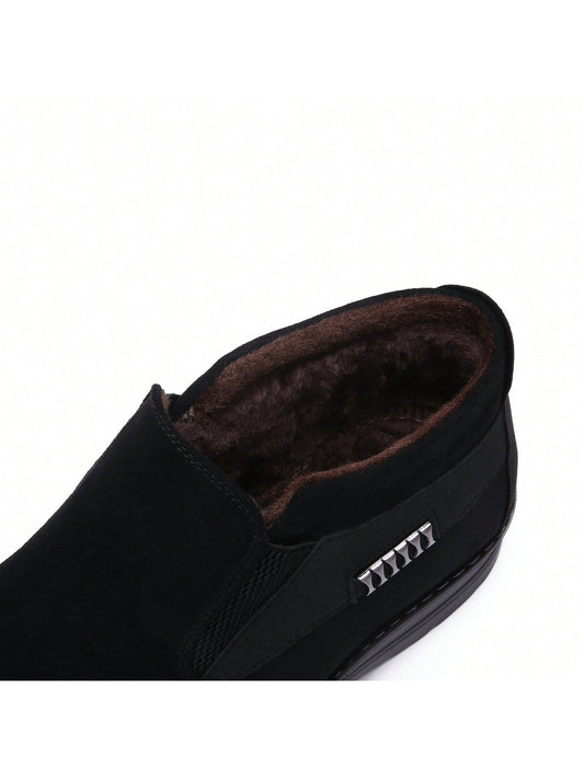 Zapatos de papá de terciopelo cálido para invierno, botas antideslizantes y resistentes al agua para personas mayores, zapatos de fácil puesta para hombres de mediana edad y ancianos
