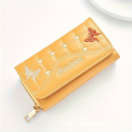 Billetera corta de cuero bordado para mujer con bolsillo con cremallera para monedas, tarjetas de estudiante y efectivo. El mejor regalo