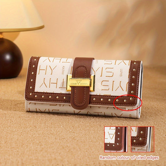 Cartera Tipo Clutch de Estilo Vintage a la Moda - Estampado Colorblock con Remaches Resistentes, Cierre Trifold y Monedero Práctico para Mujer