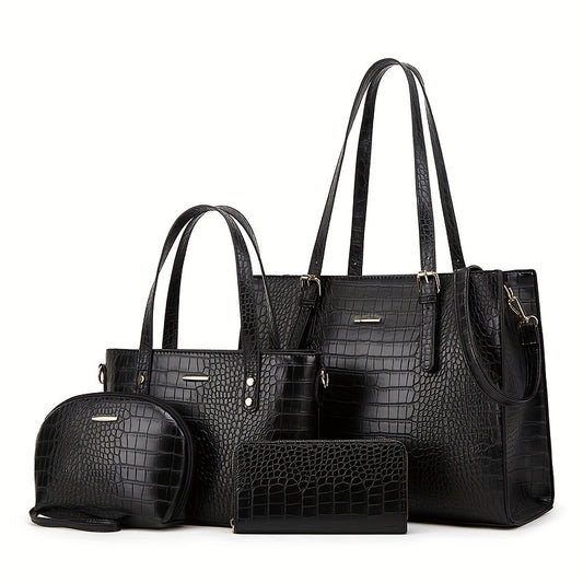 Juego de 4 pzas de Bolsos para Mujer - Cuero PU Premium, Carteras y Estuche a Juego, Bolso de Mano, Bolso de Hombro, Diseños Cruzados, Porta Tarjetas - Diseño Exquisito y Elegante para un Estilo Sofisticado