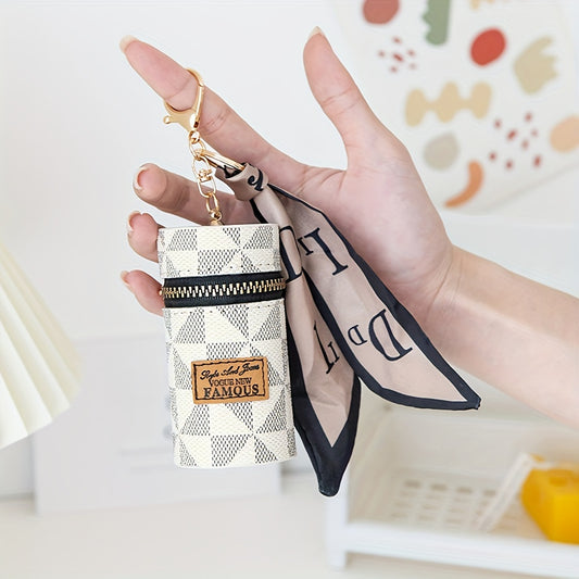 Monedero pequeño de material PU compacto con llavero y cierre de cremallera, bolso de estilo casual (3.74''x 1.97'')