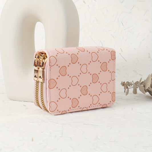 Cartera Corta con Doble Cremallera y Estampado Clásico de Corazones - Elegante Cuero PU, Múltiples Ranuras para Tarjetas - Accesorio Unisex Compacto para el Uso Diario.