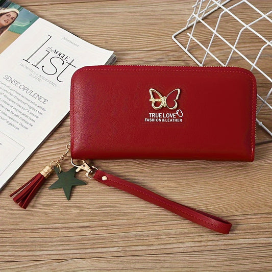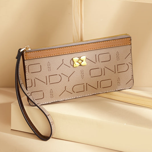Clutch Elegante Largo para Mujer - Cierre de Cremallera, Cuero PU, Forro de Poliéster, Correa de Transporte Desmontable, Bolso de Mano para Teléfono y Dinero con Detalle de Lazo de Mariposa - Limpiar con Toallita Húmeda, Estilo de Moda