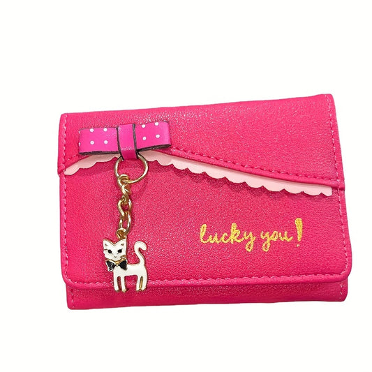 Linda cartera de gato, organizador de tarjetas de crédito y organizador de tarjetas de cuero PU lindo de dibujos animados, bolso y bolso de mano versátil informal de moda